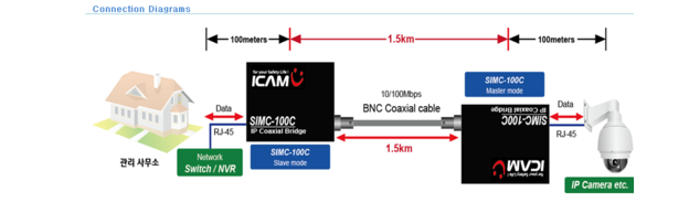 - IP카메라는 말 그대로 네트워크 카메라 입니다. 네트워크 카메라를 기본적으로 UTP케이블을 사용합니다. 한개의 배선에 허브를 연결하면 여러대의 카메라를 연결할 수 있습니다. 하지만 인터넷의 특성상 영상 도달 지연시간이 발생하거나 끊김 현상이 발생할 수 있습니다. 또한, 80M당 1대의 리피터(혹은 인터넷 허브)를 연결해야 합니다. 동축케이블로 네트워크 통신이 가능하게 만들어 주는 동축 IP전송기가 있는데, 이를 사용할 경우 동축케이블에 영상을 전송할 수 있습니다.