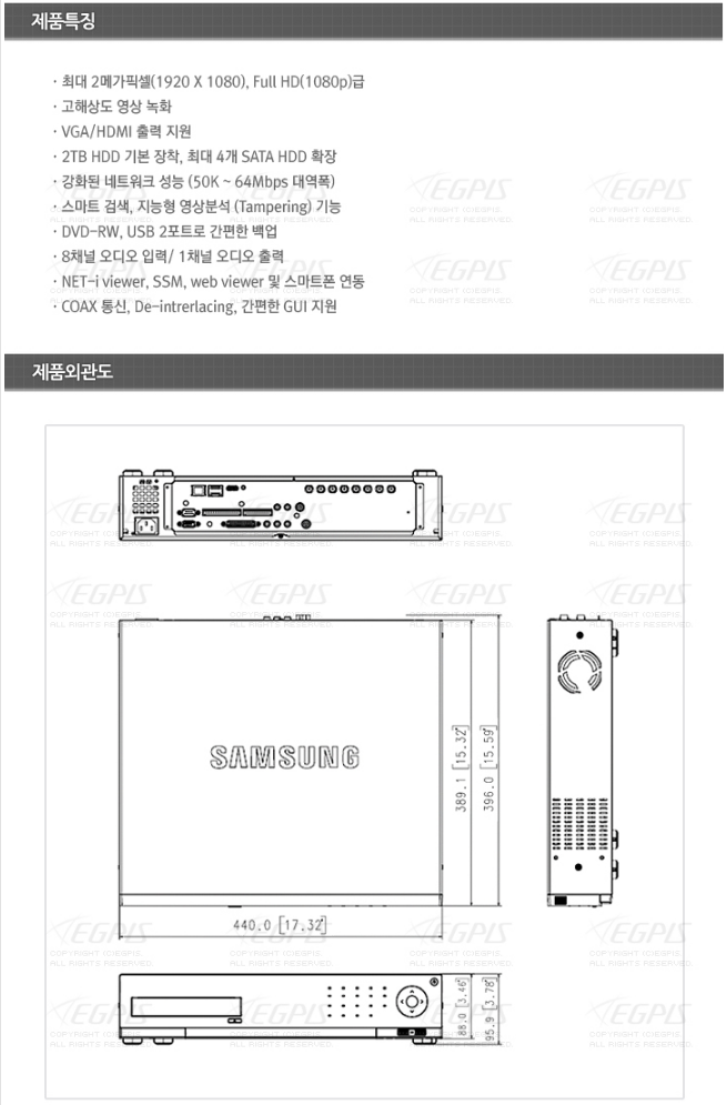 삼성테크윈 SRD-880D - 2메가픽셀 Full HD(1080P)급 고해상도 영상 녹화, 2TB HDD 기본장착, 지능형 영상분석, 간편 GUI