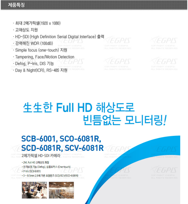 삼성테크윈 SCB-6000 - 2메가픽셀, Full HD(1080p)급 고해상도 화면, 영상 출력 사이즈 조정 가능