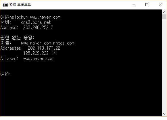 네이버의 홈페이지 주소는 고정IP를 사용하고 있습니다