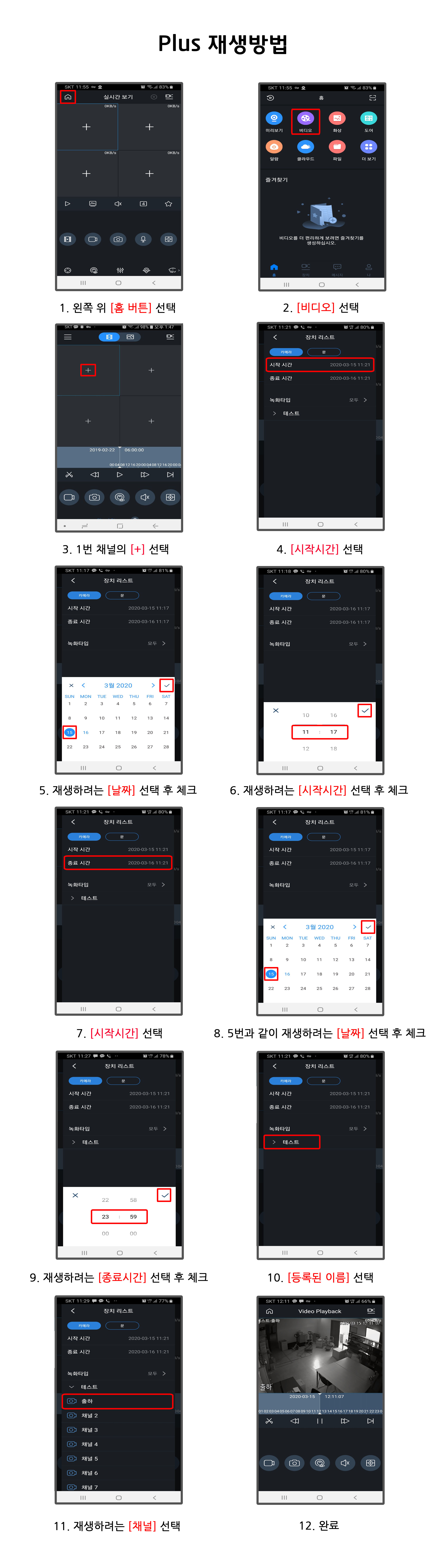 Dahua 스마트폰 어플 ( 다후아 , gDMSS PLUS) - 재생방법