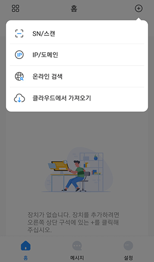 3.우측 상단의 ' + ' 선택하여 장치 등록을 시작합니다