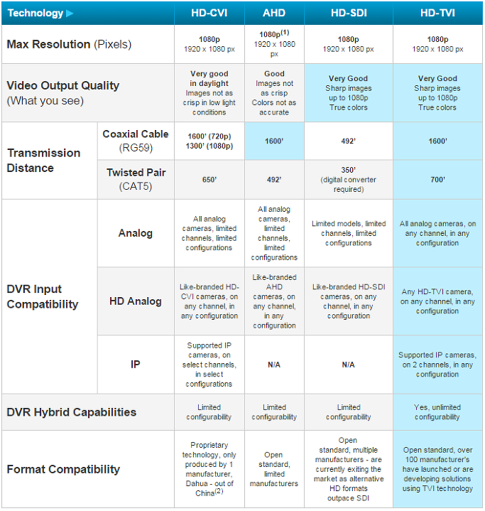 HD-TVI, HD-AHD, HD-ANA 등의 방식은 위 방식에서 5C 75옴 케이블 전송거리 100M의 제약에서 벋어나기위해  카메라/녹화기 제조회사들이 개발한 방식들을 얘기하는 것입니다.
