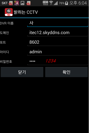 아래와 같이 입력하시는데, 여기서 도메인 설치시 안내 받은 것으로 해야 합니다. 확인이 안된다면 녹화장비의 설정 > 네트워크에 들어가시면 등록된 도메인을 확인하실 수 있습니다.