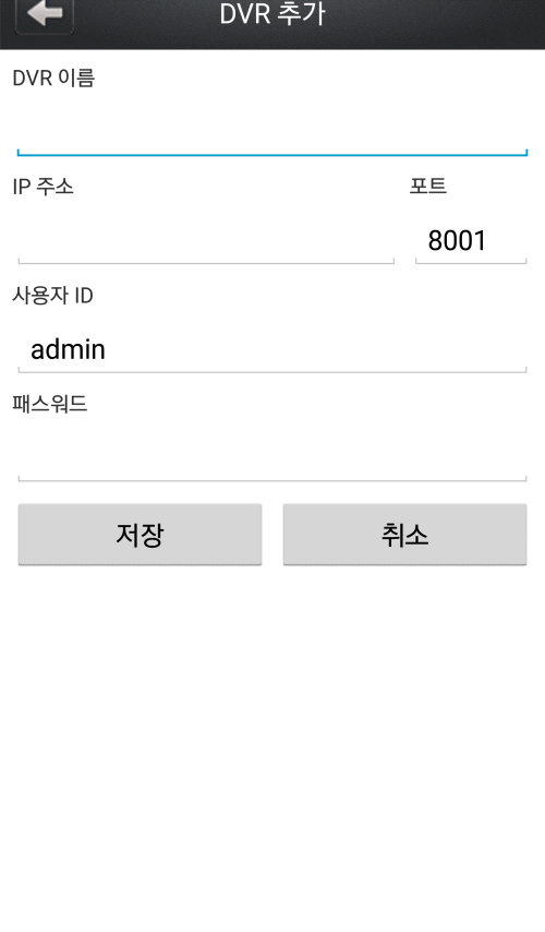 4.DVR이름 및 IP정보 와 패스워드를 입력 후 저장합니다